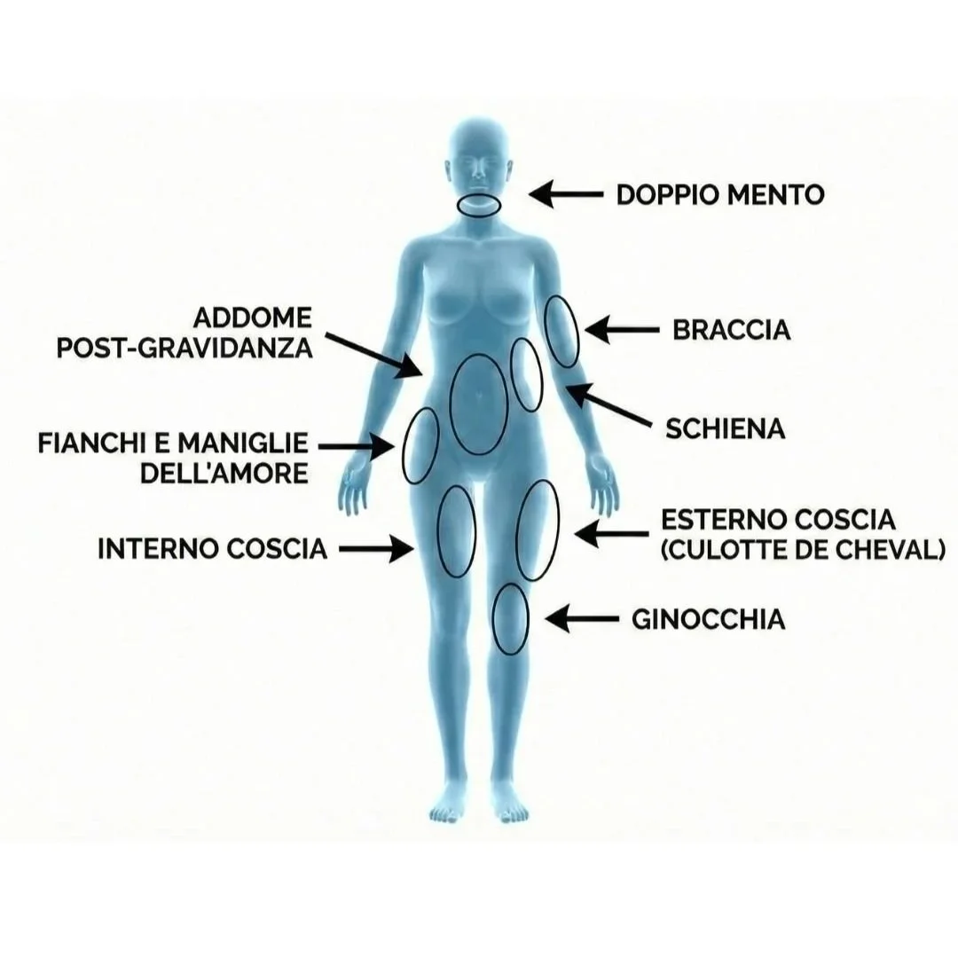 Risultato: la zona trattata si assottiglia, si definisce, si alleggerisce. Come se il tuo corpo tornasse alla sua versione migliore.